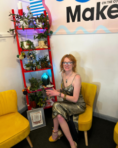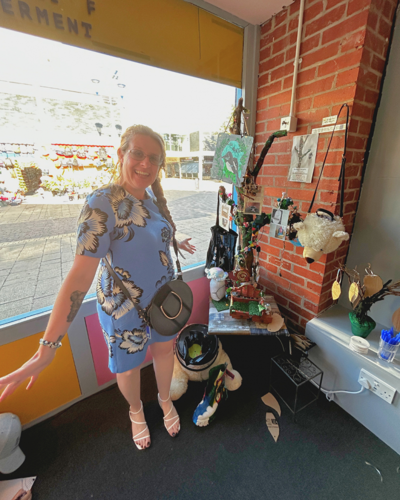 Then there was Sarah Teasdale AKA Sadie Magpie, whose name alone evokes the spirit of her work. Using salvaged materials, she created a whimsical tree from which she hung an array of animals, trinkets, and playful forms that made her section of the showcase feel like stepping into a storybook glade. Her commitment to reuse and imagination resonated beautifully with the exhibition’s community ethos.