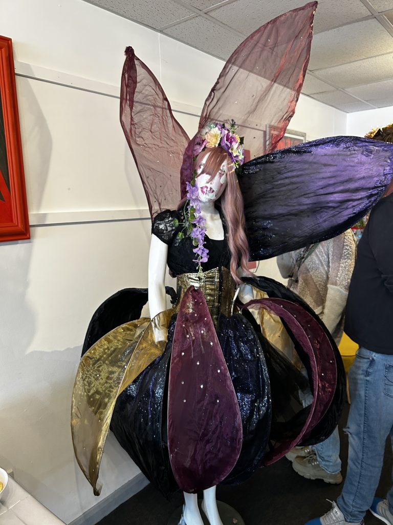 Pyromancy Productions added a theatrical flair with an ethereal fairy-like costume draped over a mannequin. Paired alongside Agnieszka’s plants, the costume’s delicate detailing and handcrafted symbolism created a little world that whispered of magic and self-empowerment. Maker Nicky Billington shared how their creations are made to invoke self-love, protection, and abundance. These values are clearly stitched into every seam.