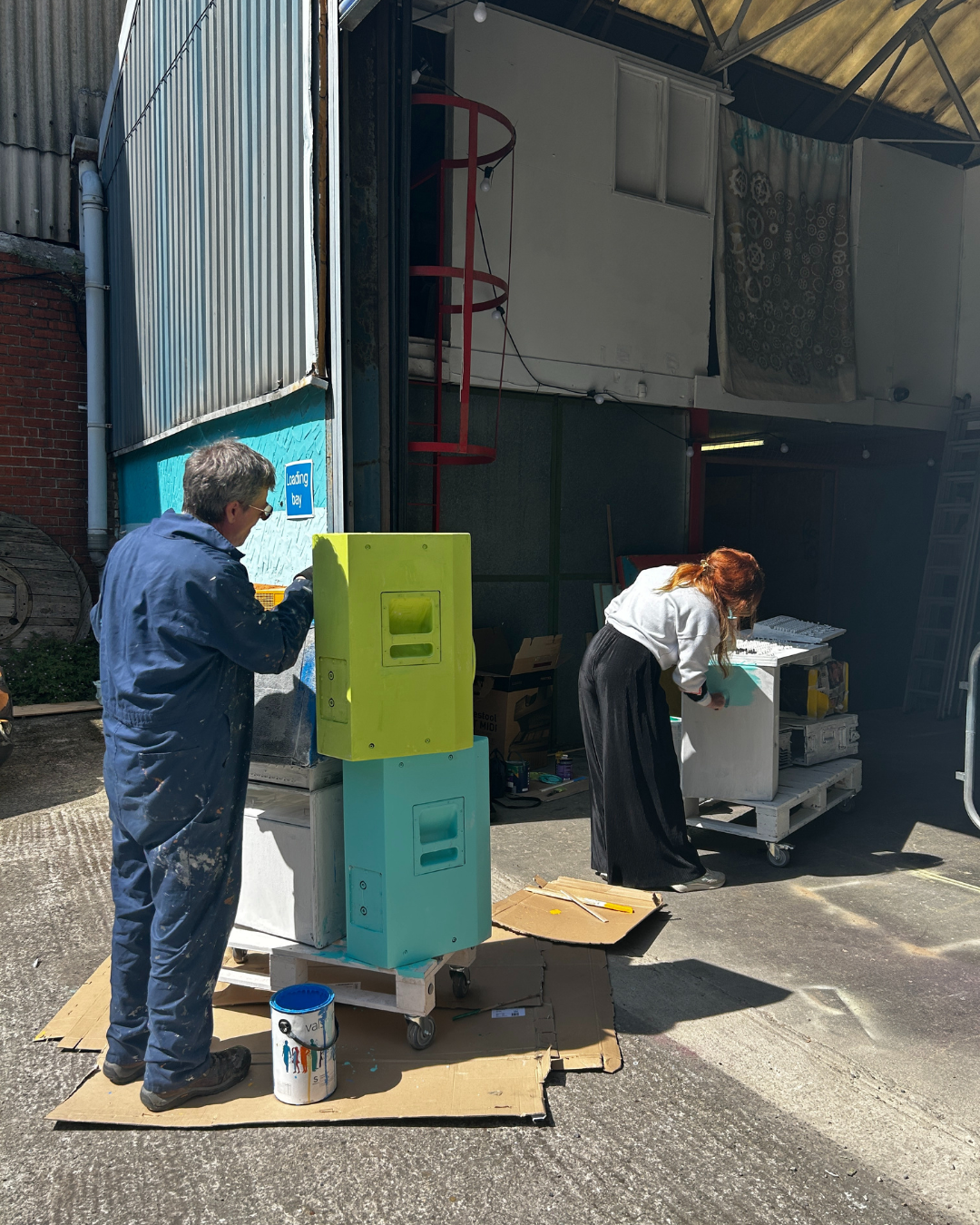 We worked hard to keep the entire project hyperlocal – not just for environmental reasons, but to support our amazing local network of creatives and suppliers. 90% of all materials came from within five miles of Make CIC, and 11 out of 13 suppliers were local. Even our delivery vans came courtesy of Birkenhead Van Hire, helping us save over 250 miles of transport, and approximately 67 kg of CO₂e in emissions.